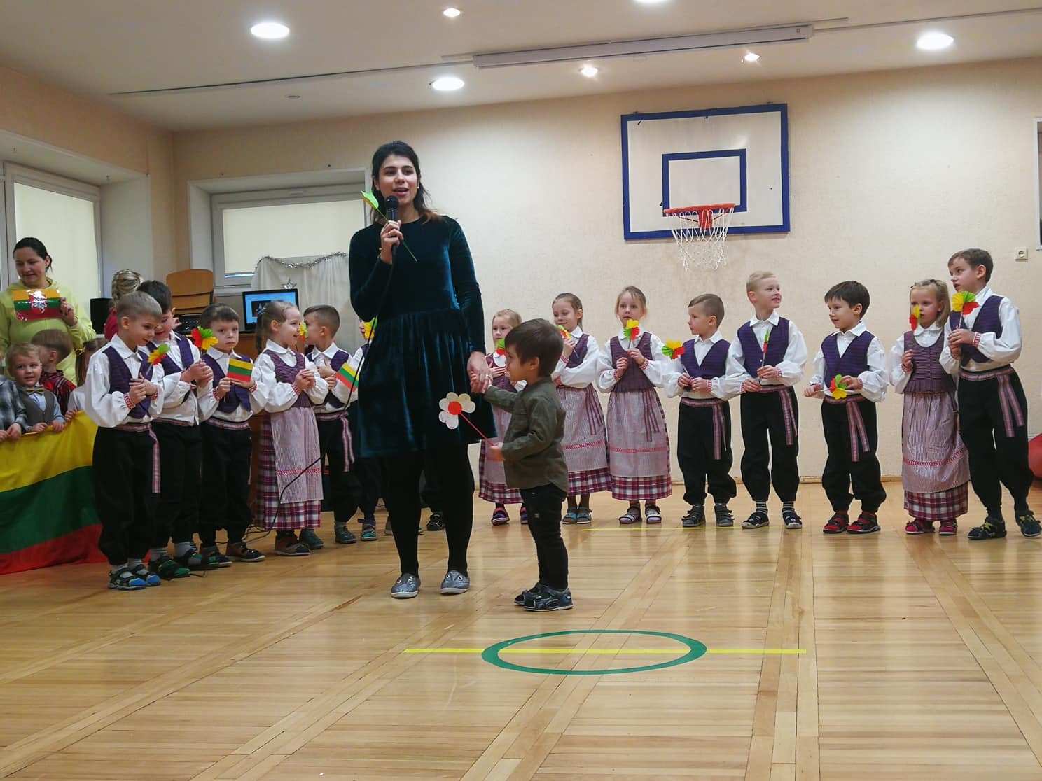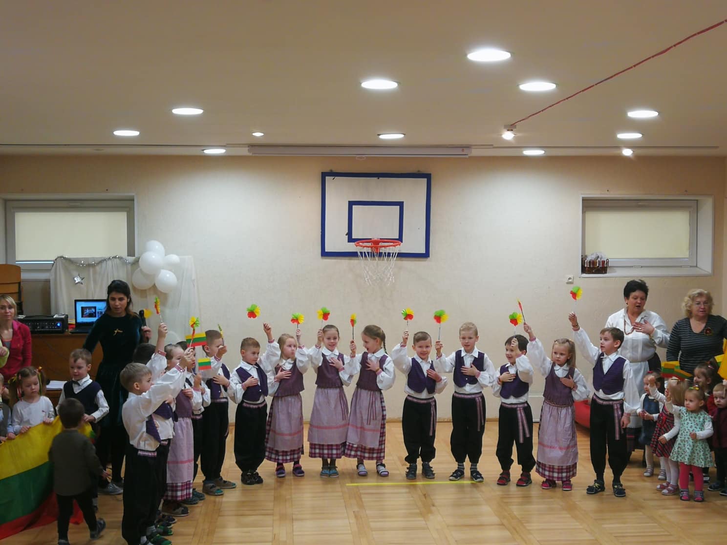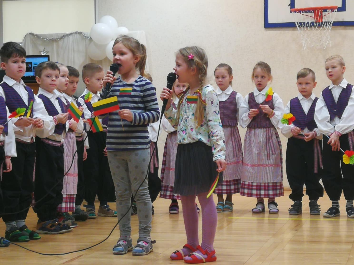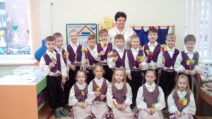 Penktadienio rytas... Vaikų rankose plevėsuoja trispalvės, veidus puošia šypsenos, iškilmingai giedamas Lietuvos Respublikos himnas, o pakylėjimo jausmą suteikia ir tautinis kostiumas.
