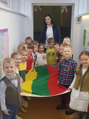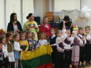 Visa diena skirta švęsti Lietuvos gimtadienį. Grupėse ir lauke veiklos skirtos tik Lietuvai. O vakarą užbaigia 4-mečių vaikų ir tėvelių protmūšis.