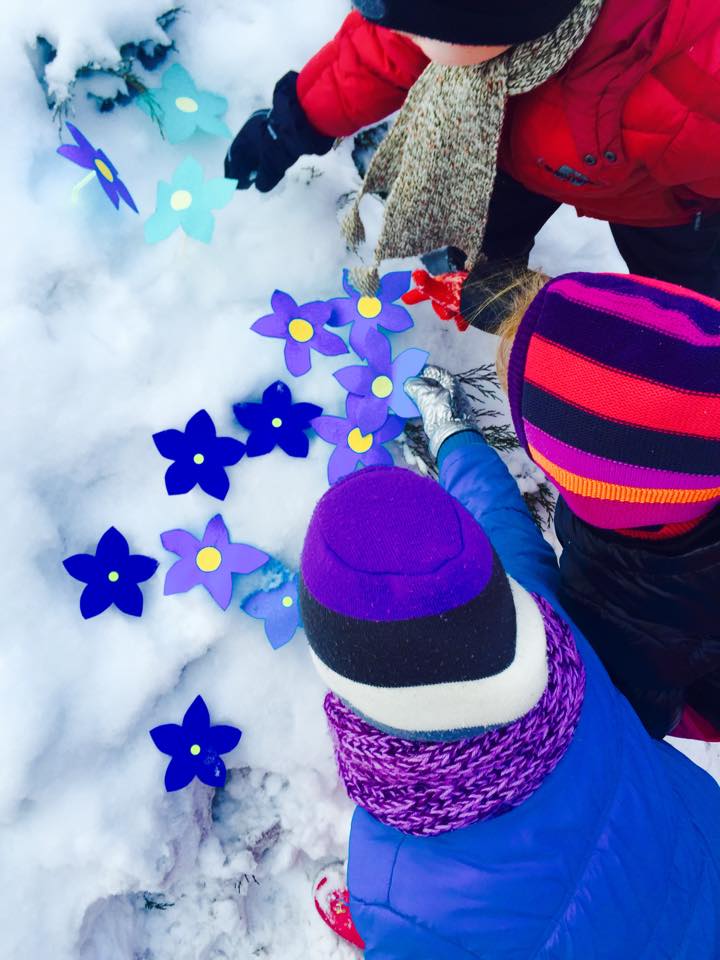 Per pietus įstaigos kiemą papuošė pieva pačių gamintų neužmirštuolių. Visą dieną auklėtojos ir vaikai kalba apie šios dienos prasmę.