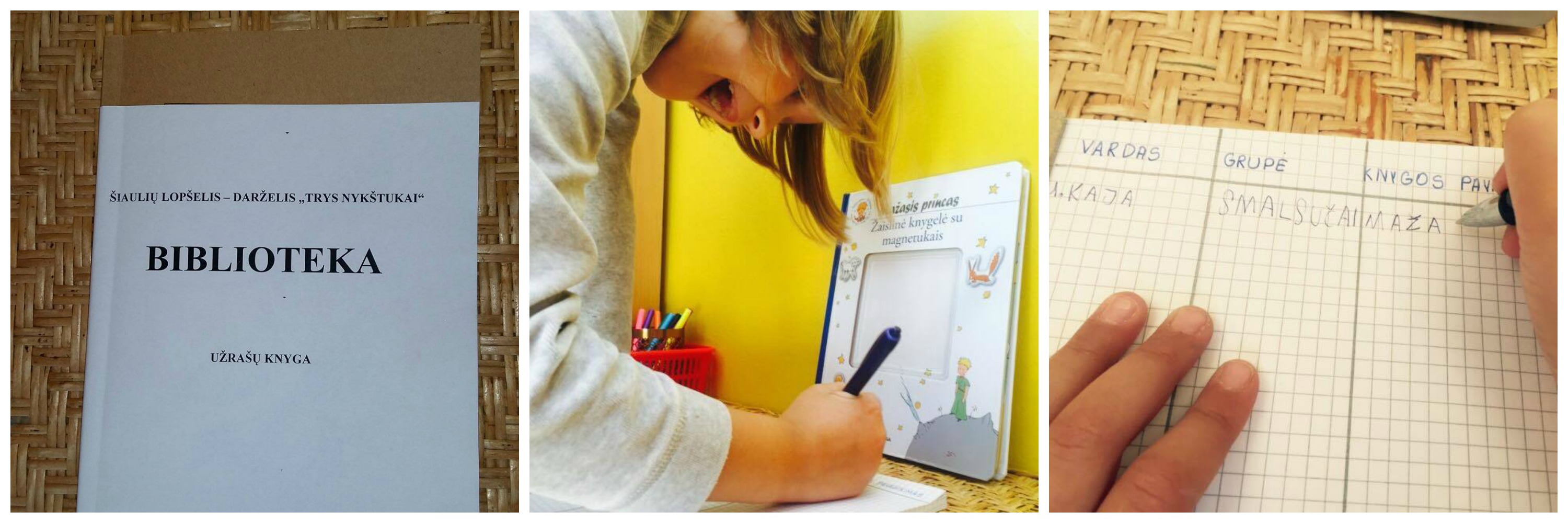 Vaikai atsisveikino su savo knygelėmis uždėdami joms antspaudus ir patvirtindami, kad nuo šiol knygelės priklauso "Trijų nykštukų" bibliotekai.