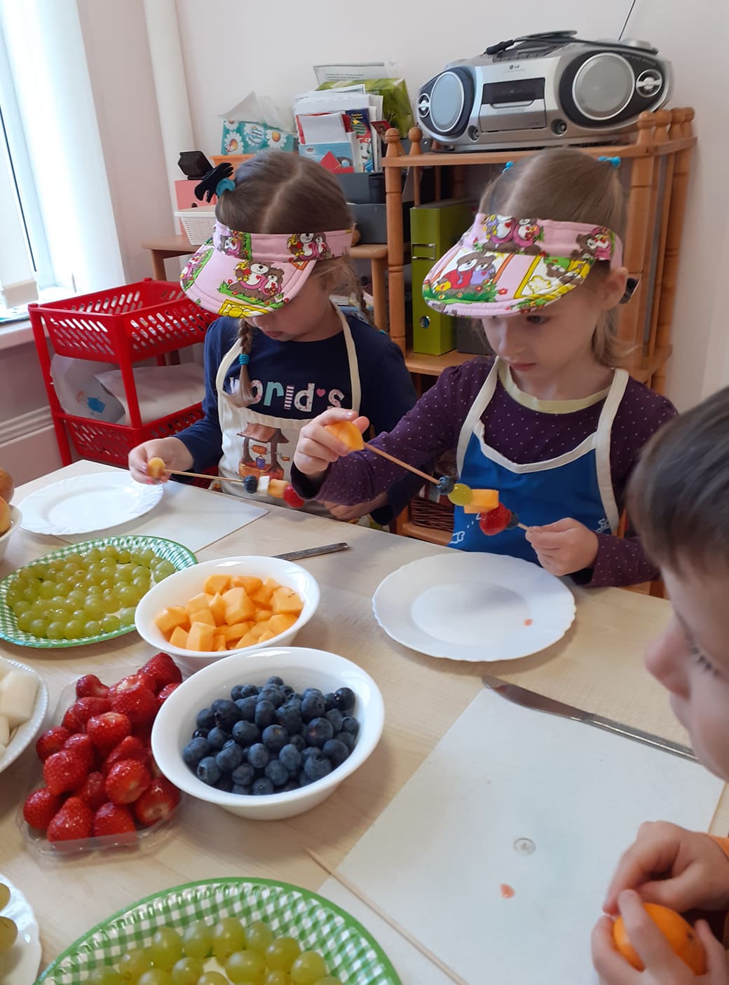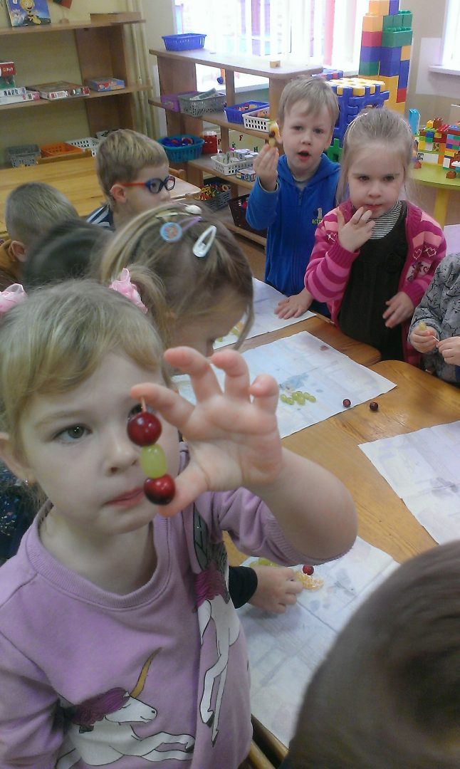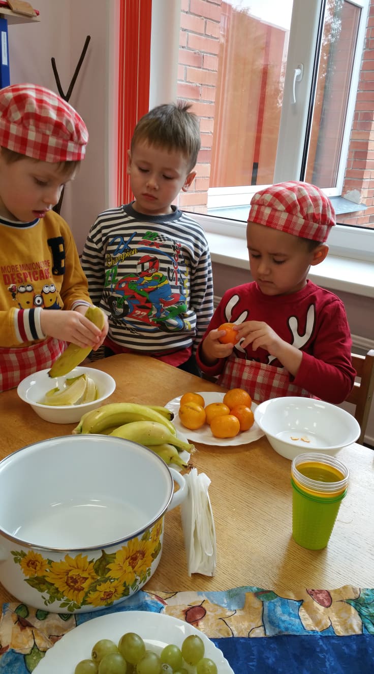 Pirmadienis - vaišių diena! Gaminome, skanavome ir degustavome, smaližiavome ir draugus vaišinome. Vaikai kartu su auklėtojomis ir tėvais gamino skaniausius vaisių vėrinukus, salotas, spaudė sultis, eksperimentavo gamindami kokteilius. O darbuotojai buvo pakviesti į Šiaulių miesto sveikatos biuro organizuojamas praktines dirbtuves ,,Vaivorykštė lėkštėje".