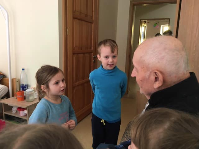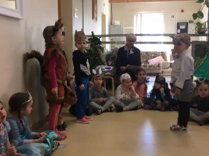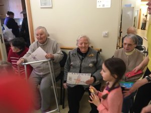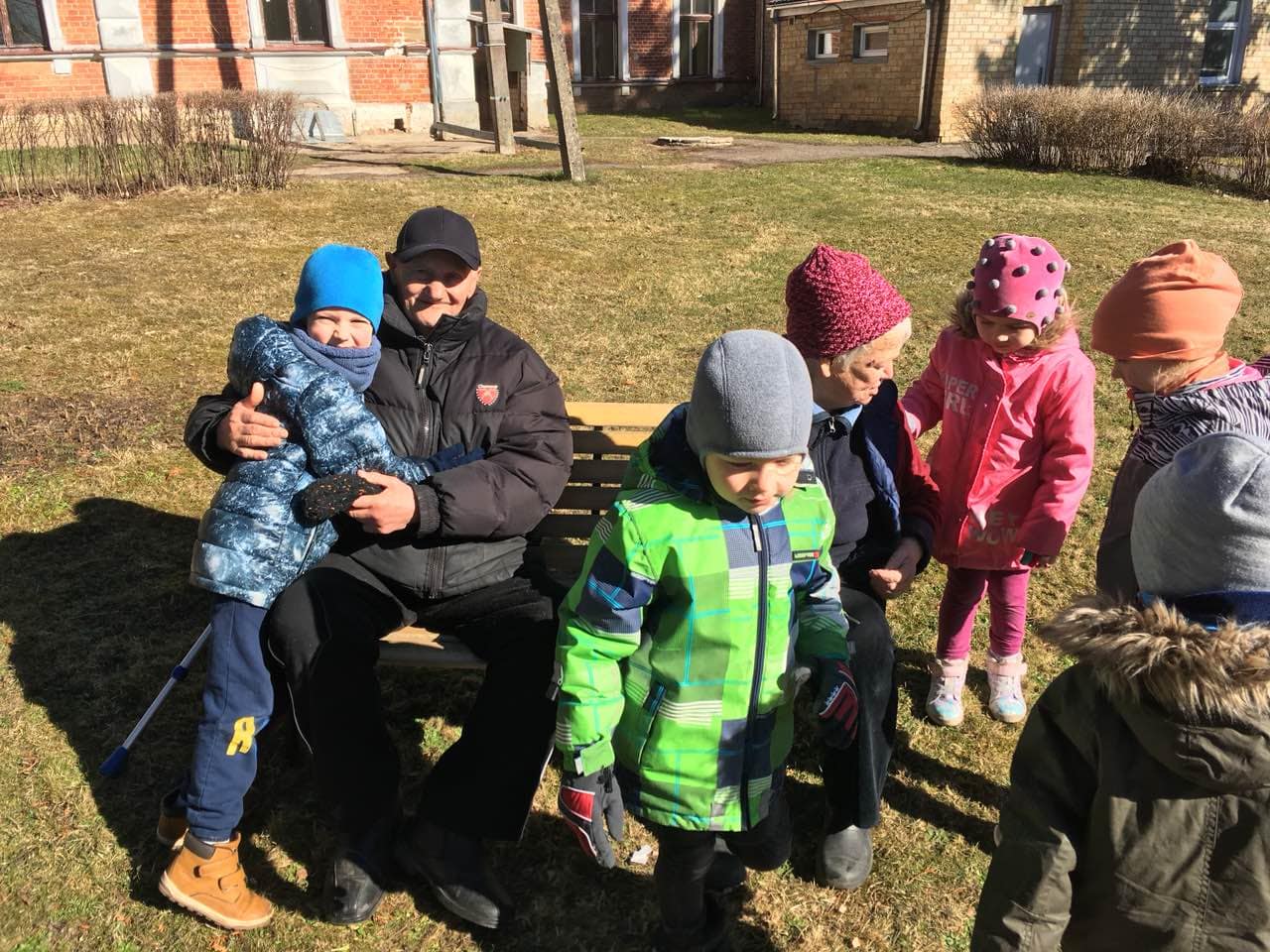 Pirmadienio rytą ,,Zuikučių" grupės ugdytiniai kartu su auklėtoja Rūta bei muzikos vadove Audrone vyko į Šaukėnų senelių namus, kur visi kartu šoko, dainavo, vaidino, žaidė, vaišinosi ir smagiai leido laiką.