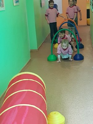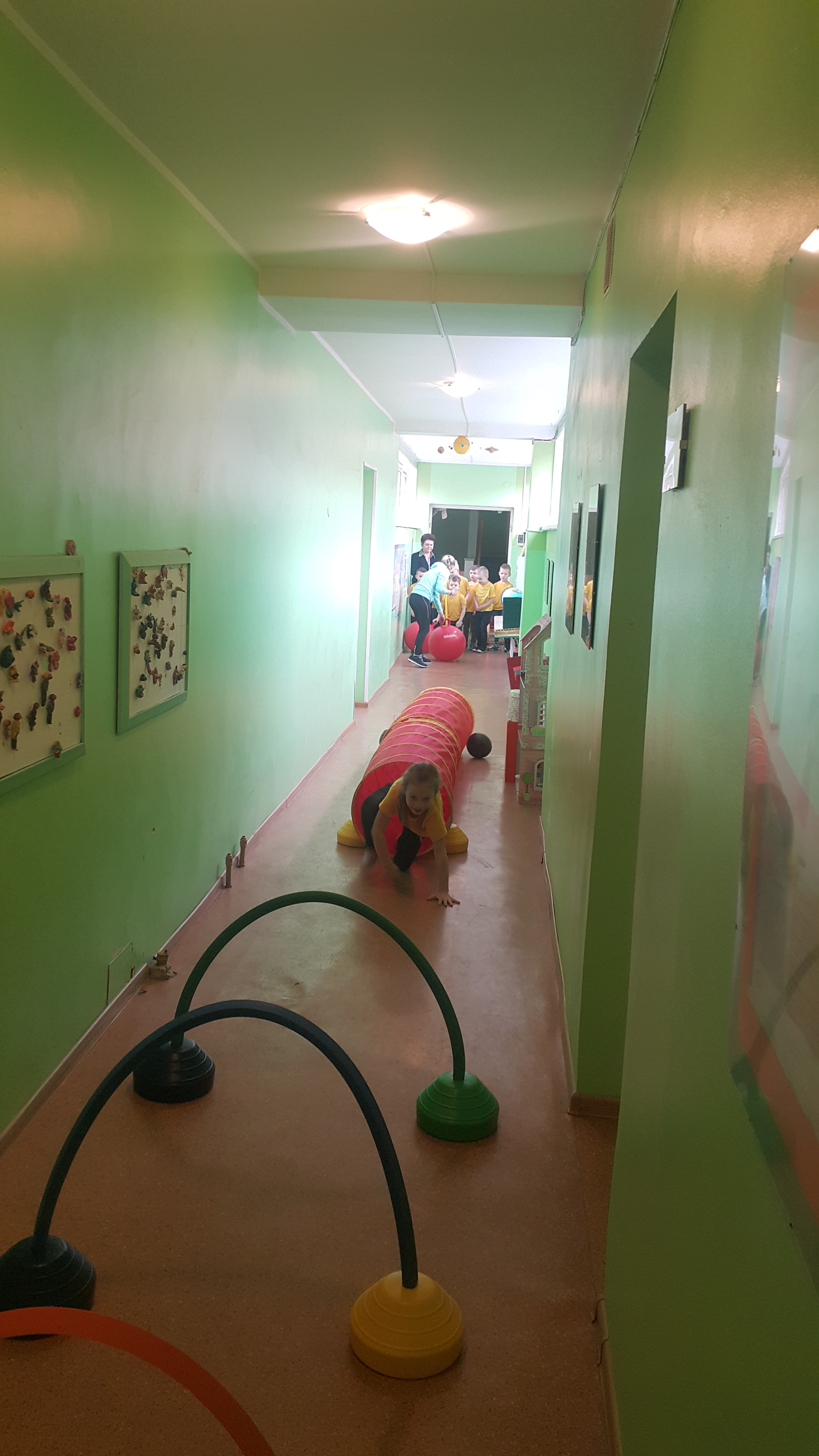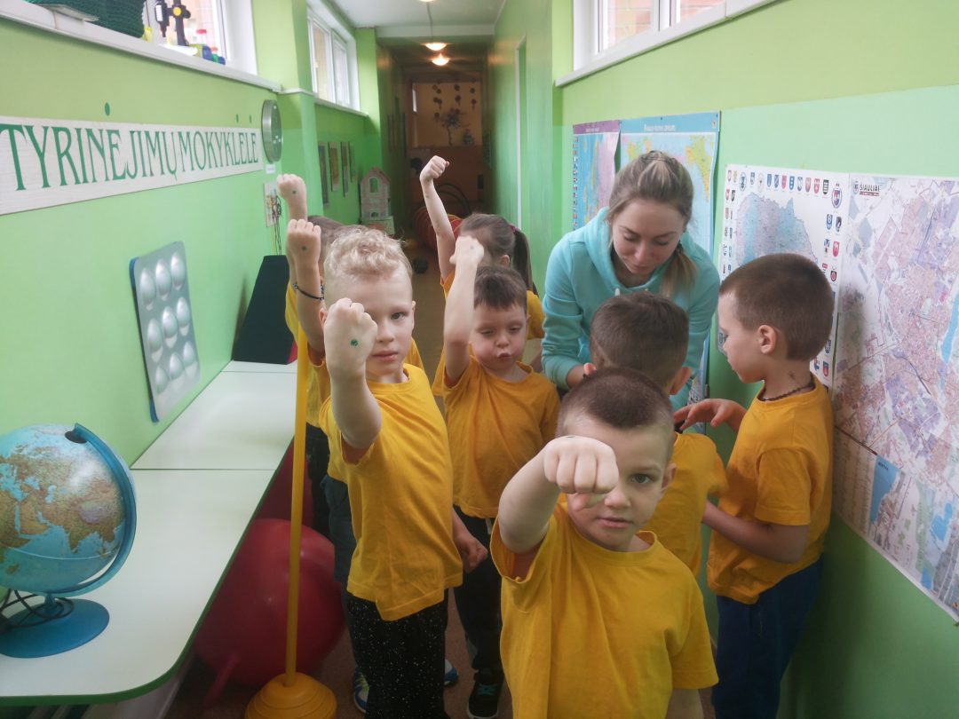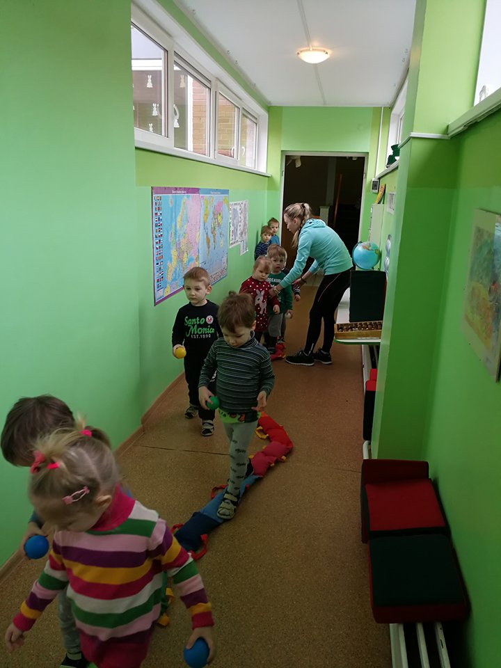 Rytmetį visi lopšelio-darželio "Trys nykštukai" ugdytiniai pradėjo judėdami koridoriaus labirintuose. Nuotaikingas užduotis, estafetes vaikams parengė ir savo jėgas išbandyti kvietė judesio korekcijos mokytoja Asta, socialinė pedagogė Jurgita ir visuomenės sveikatos priežiūros specialistė Karolina. Vaikai entuziastingai atliko pavestas užduotis, išbandė ištvermę ir jėgas.