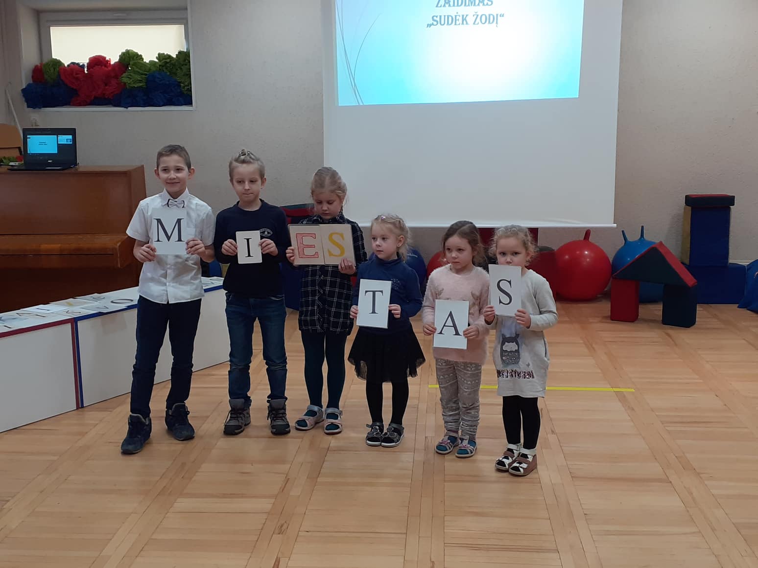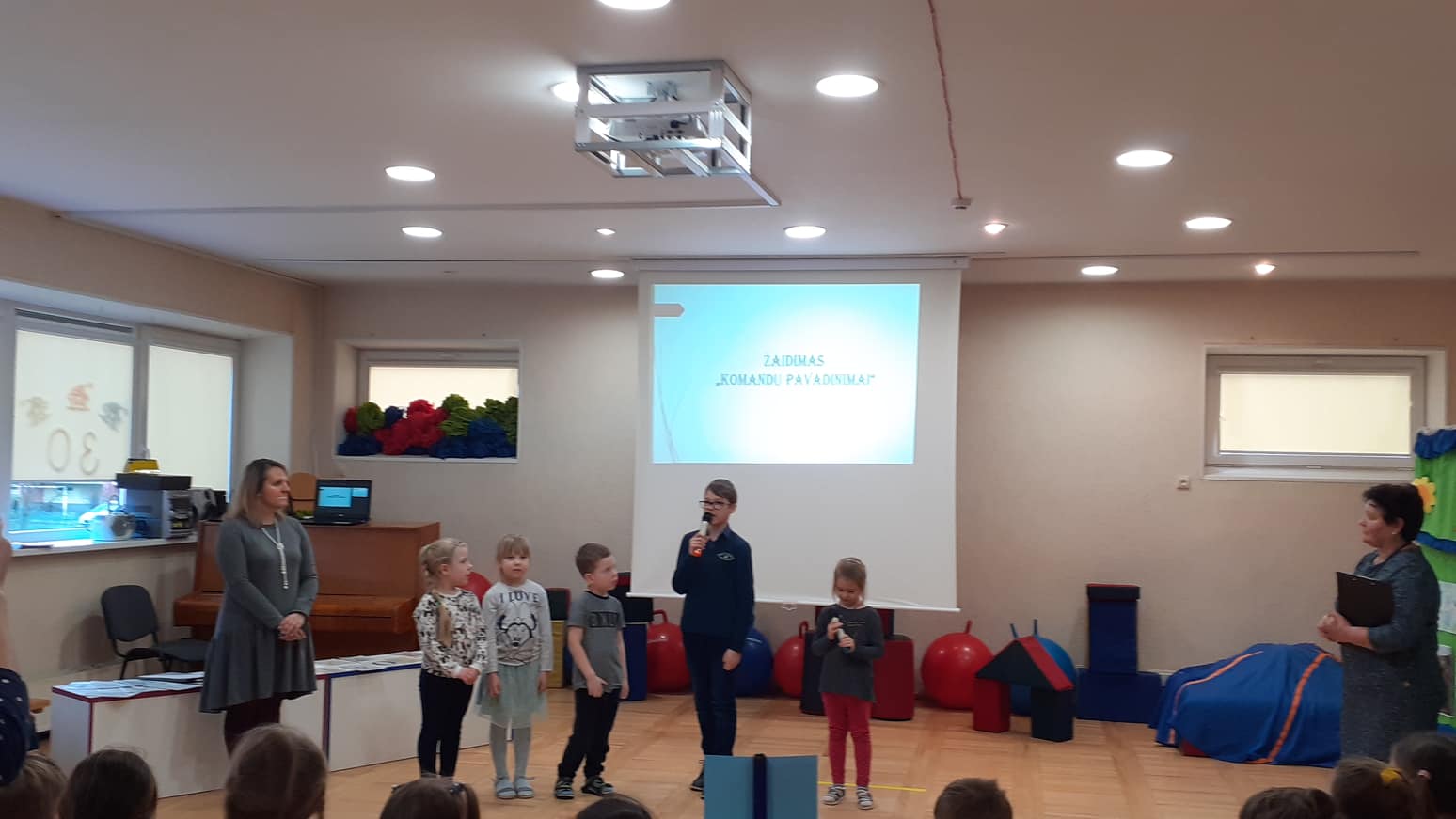 Ketvirtadienį vyko baigiamasis projekto "Ką slepia vietos pavadinimas?" renginys, kuriame dalyvavo visi lopšelio - darželio "Trys nykštukai" projekte dalyvavę ugdytiniai bei vieni gausiausiai palaikę šį projektą V.Kudirkos progimnazijos antrokai ir jų mokytojas Regimantas.