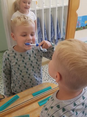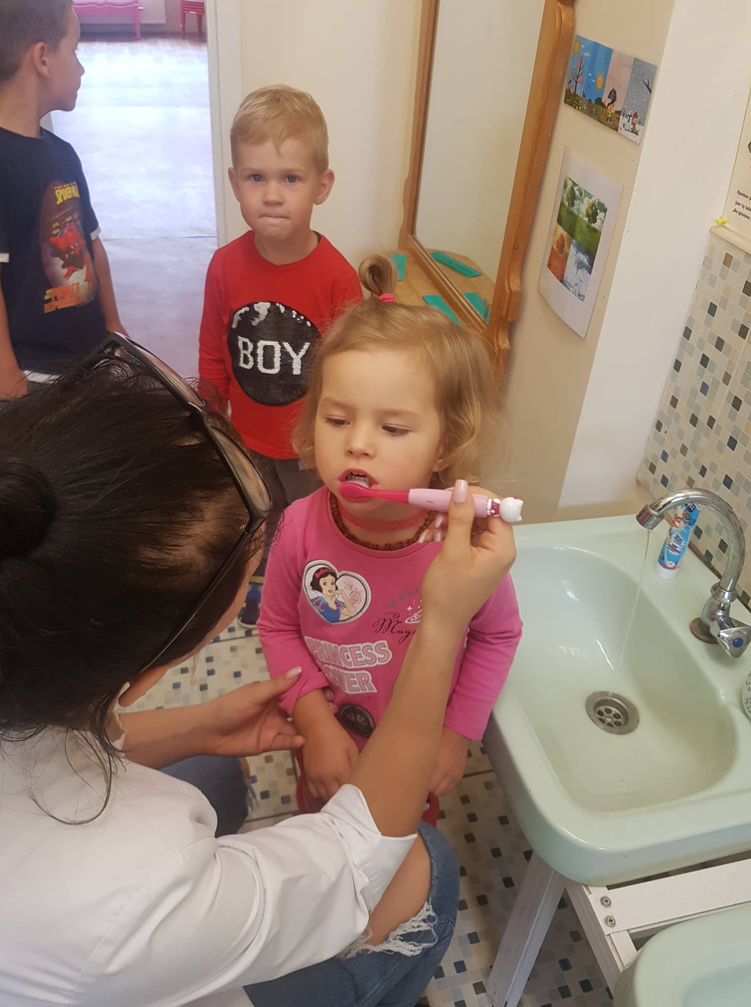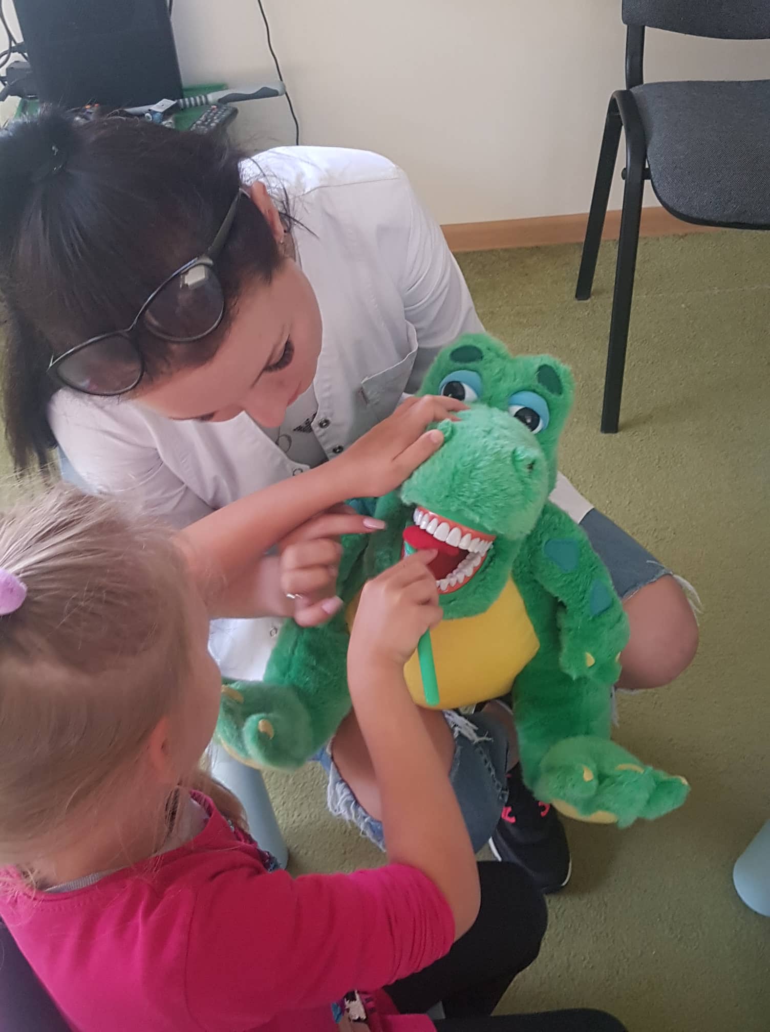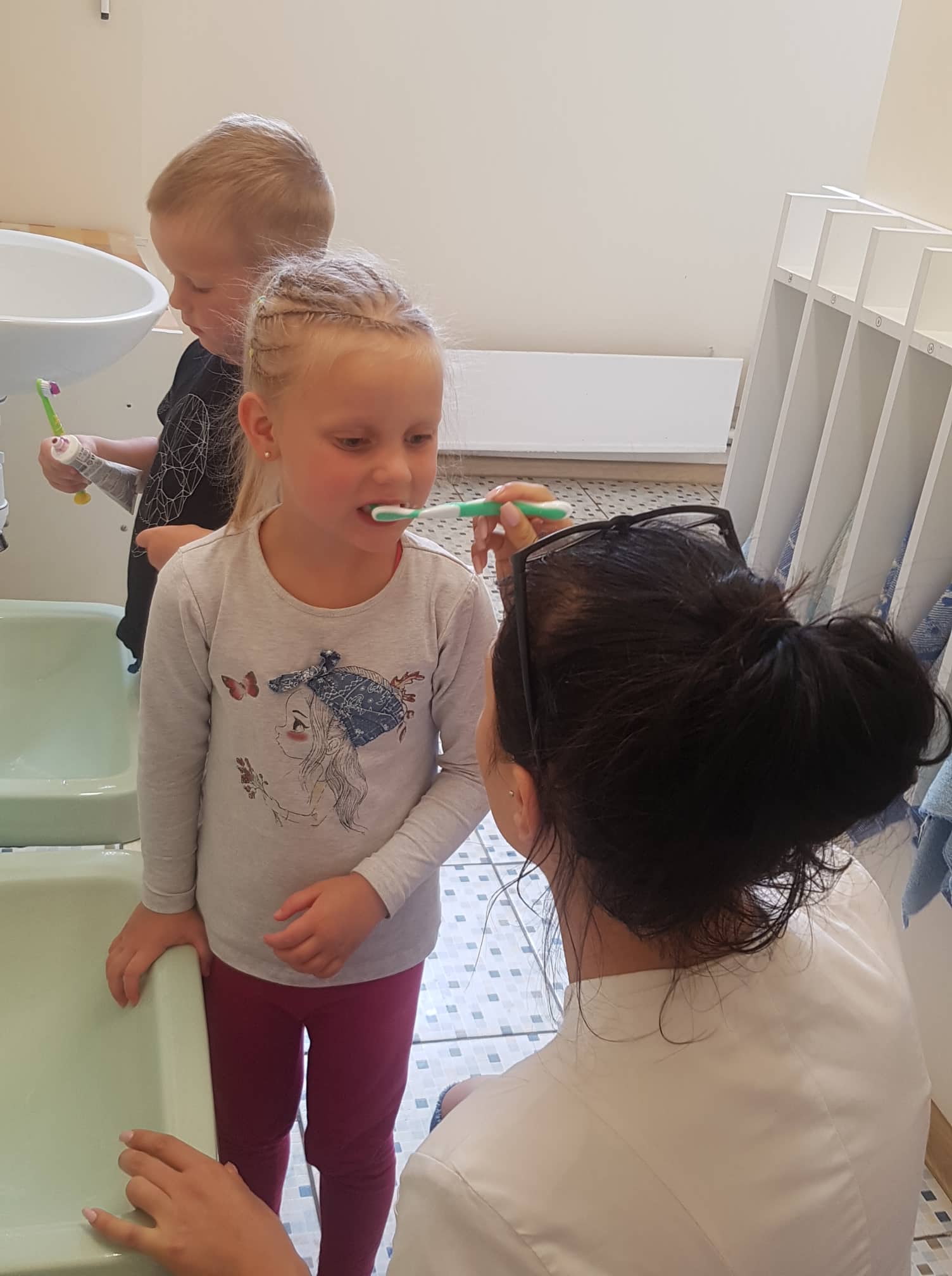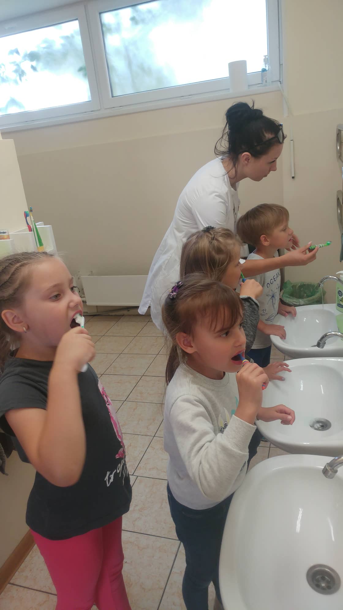 Pirmadienį ir antradienį įstaigoje lankėsi Šiaulių miesto visuomenės sveikatos biuro burnos higienos specialistė Agnė Žymantaitė, kuri vaikams vedė teorines ir praktines pamokėles apie dantukų priežiūrą.