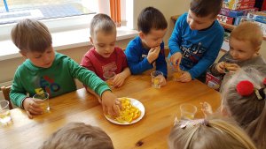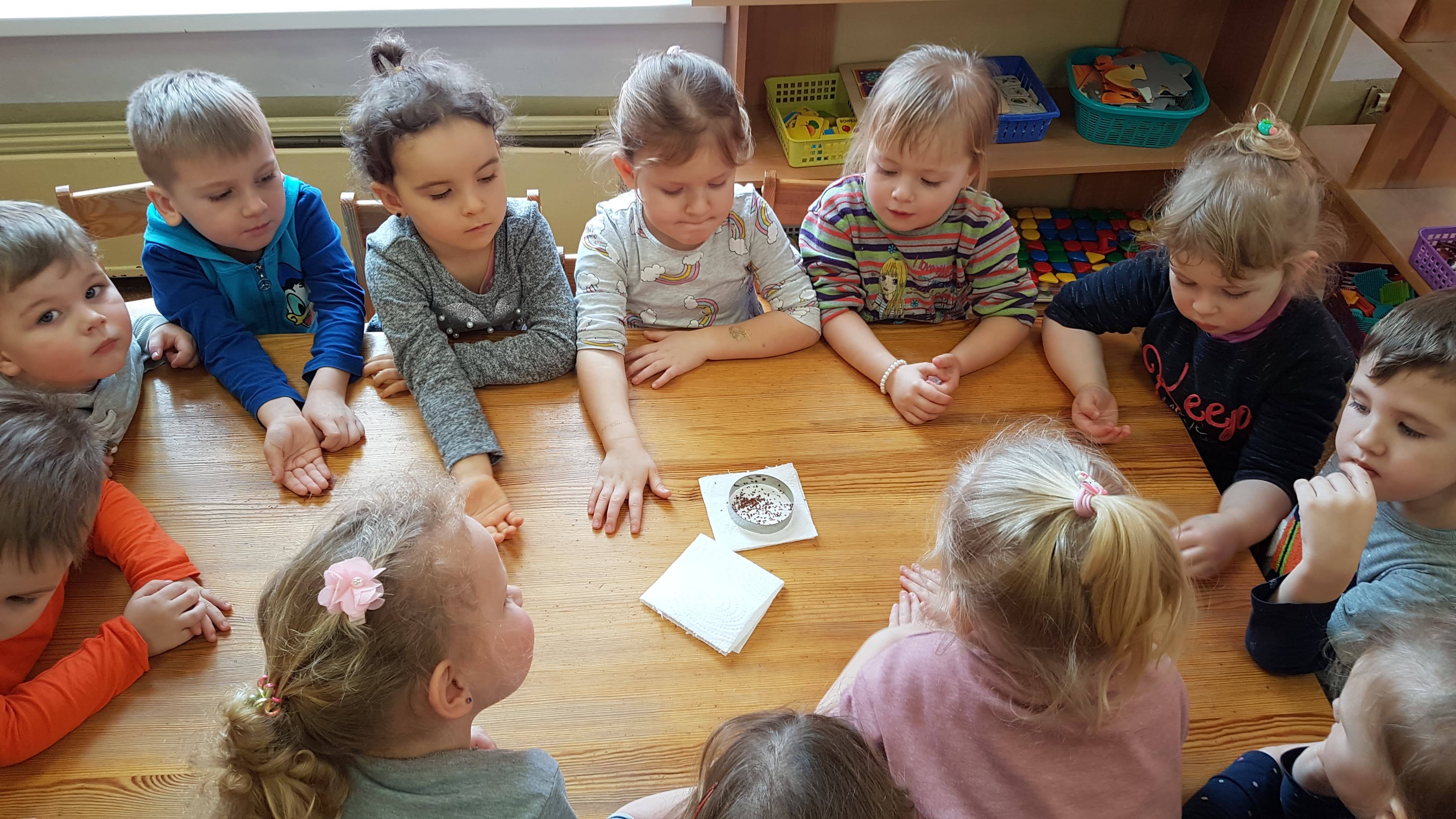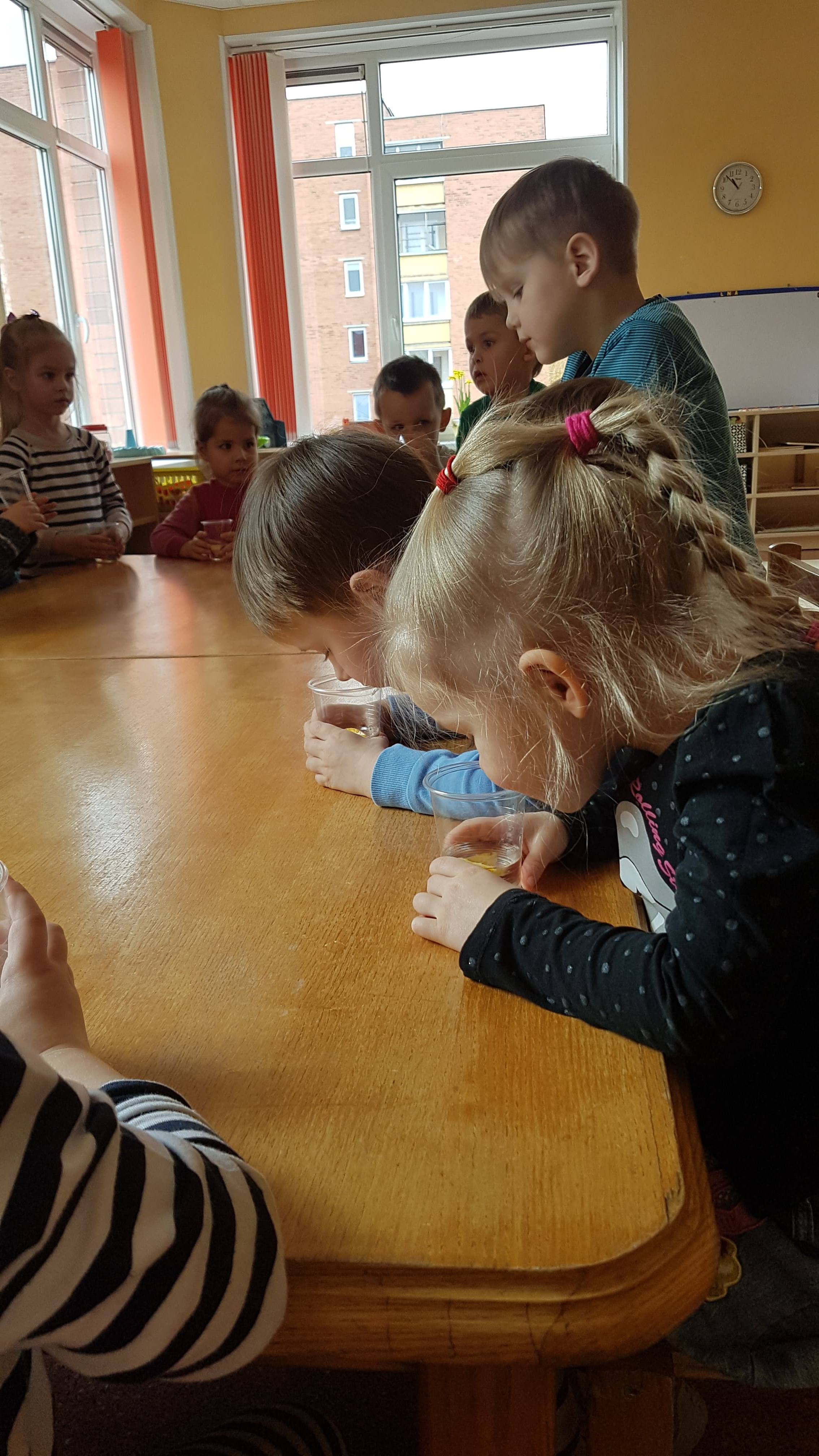 Kovo mėnesį ,,Nykštukų", ,,Linksmučių", ,,Naminukų" ir ,,Pabiručių" grupių vaikai su sveikatos specialiste Karolina kalbėjo apie vandenį - kiek jo reikia išgerti, kam reikalingas vanduo ir kur jį naudojame, kaip jį galime taupyti ir kuo vanduo naudingas mūsų organizmams. Vaikai taip pat žiūrėjo filmuką apie vandens būsenas, taršą. Atliko eksperimentą - pasėjo sėklytes ir laukė ar sudygs palaistytos pipirnės, ar sudygs tos, kurių nelaistė. Vaikai kūrė ir savo skonio vandenį, kurį galėjo pagardinti vaisiais.