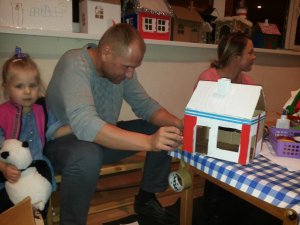 Trečiadienio pavakarę lopšelio-darželio "Trys nykštukai" bendruomenė (vaikai, tėvai ir auklėtojos) rinkosi į vakarėlį "Kalėdinių namelių gamyba", kuriame visi kartu kūrė kalėdinį nykštukų miestą. Vakaras buvo kupinas šypsenų, dalijimosi idėjomis ir kūrybinio džiaugsmo.