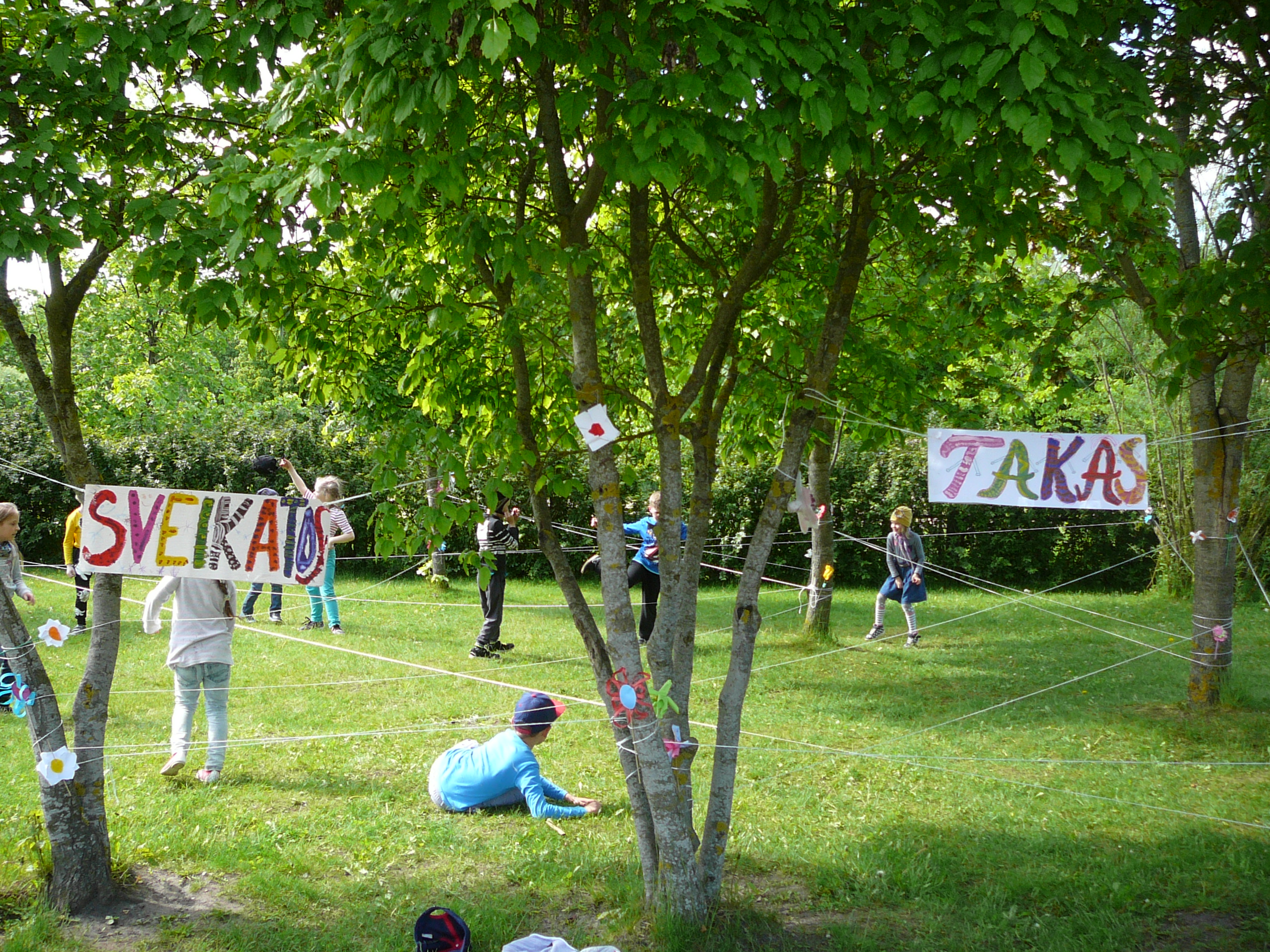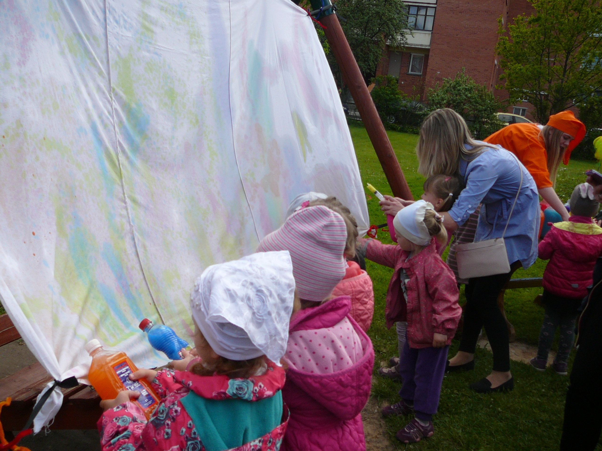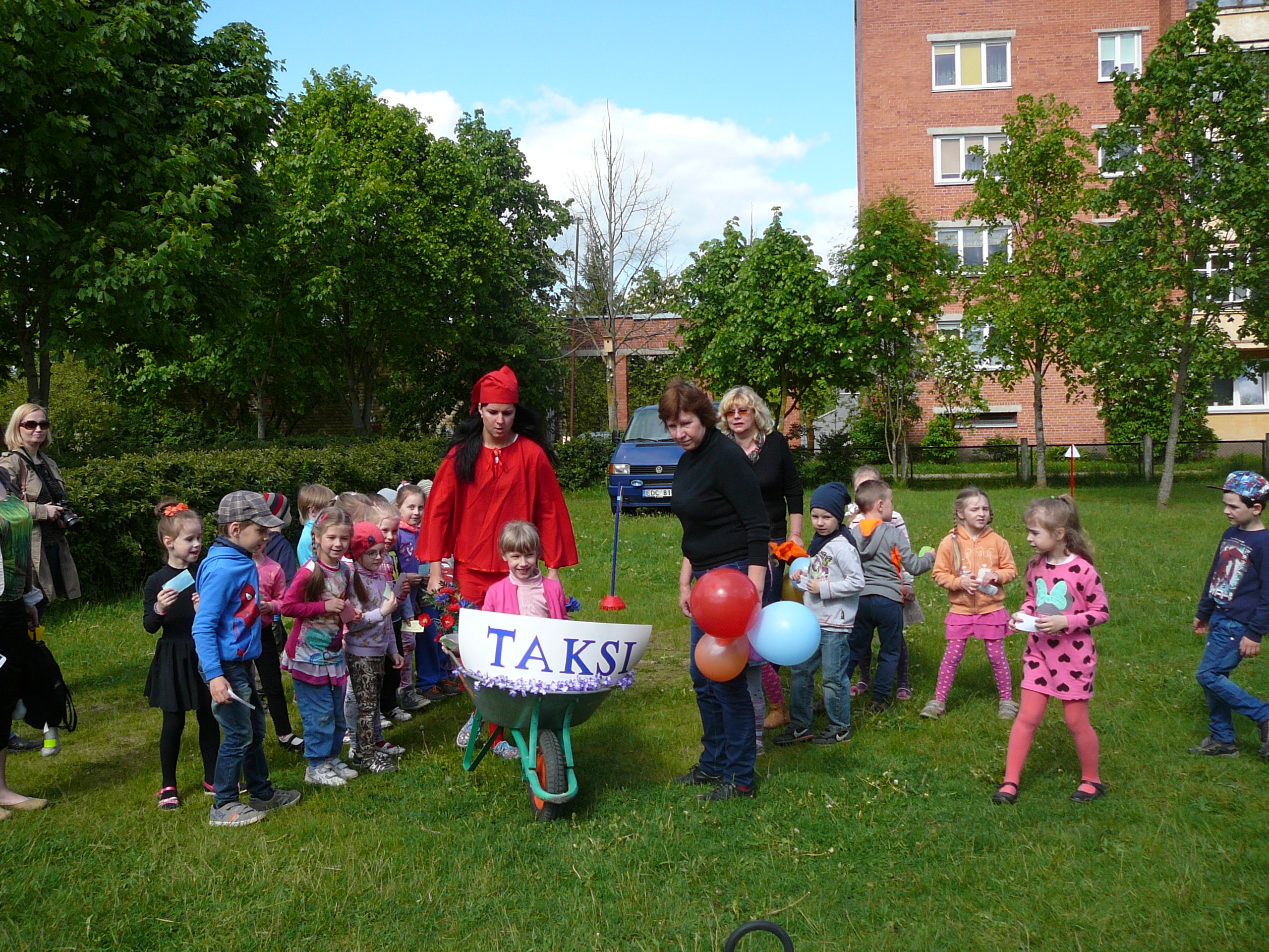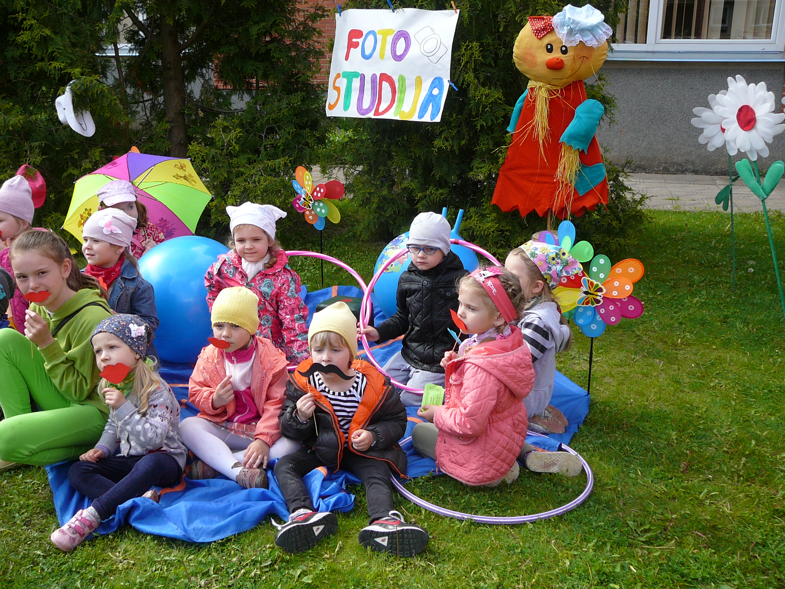 Kiekviename darželio kampelyje veikė įdomios ir spalvingos užduotys. Daugiausiai dėmesio sulaukė veikianti fotostudija, kurioje fotografavosi visi norintys. Taip pat sėkmingai veikė "Trijų nykštukų taksi", kuriuo vėžinosi ne vienas šventės dalyvis. Savo jėgas labirintuose, sveikatos takelyje išbandė ir patys mažiausi, ir patys didžiausi šventės dalyviai. Vaikai ne tik žaidė spalvomis, žėrė komplimentus darželiui, bet ir nepraleido progos rankų antspaudus palikti identifikavimo tarnyboje. Netrūko ir šiltų NEMOKAMŲ apkabinimų, kuriuos dalino šmaikščiosios darželio auklėtojos. Po gausaus ir skanaus pikniko šiltą popietę atsigaivinti pačia skaniausia arbata kvietė virtuvės darbuotojos, o šventės vinimi tapo SALDAINIŲ LIETUS. O kas gi nenorėtų, kad lytų saldainiais?