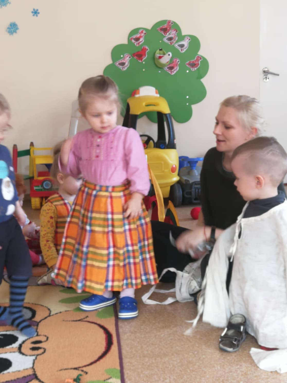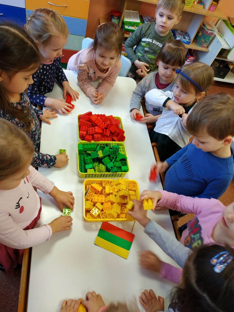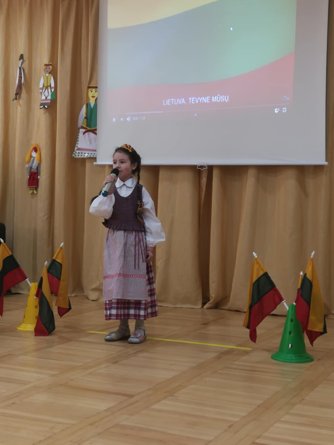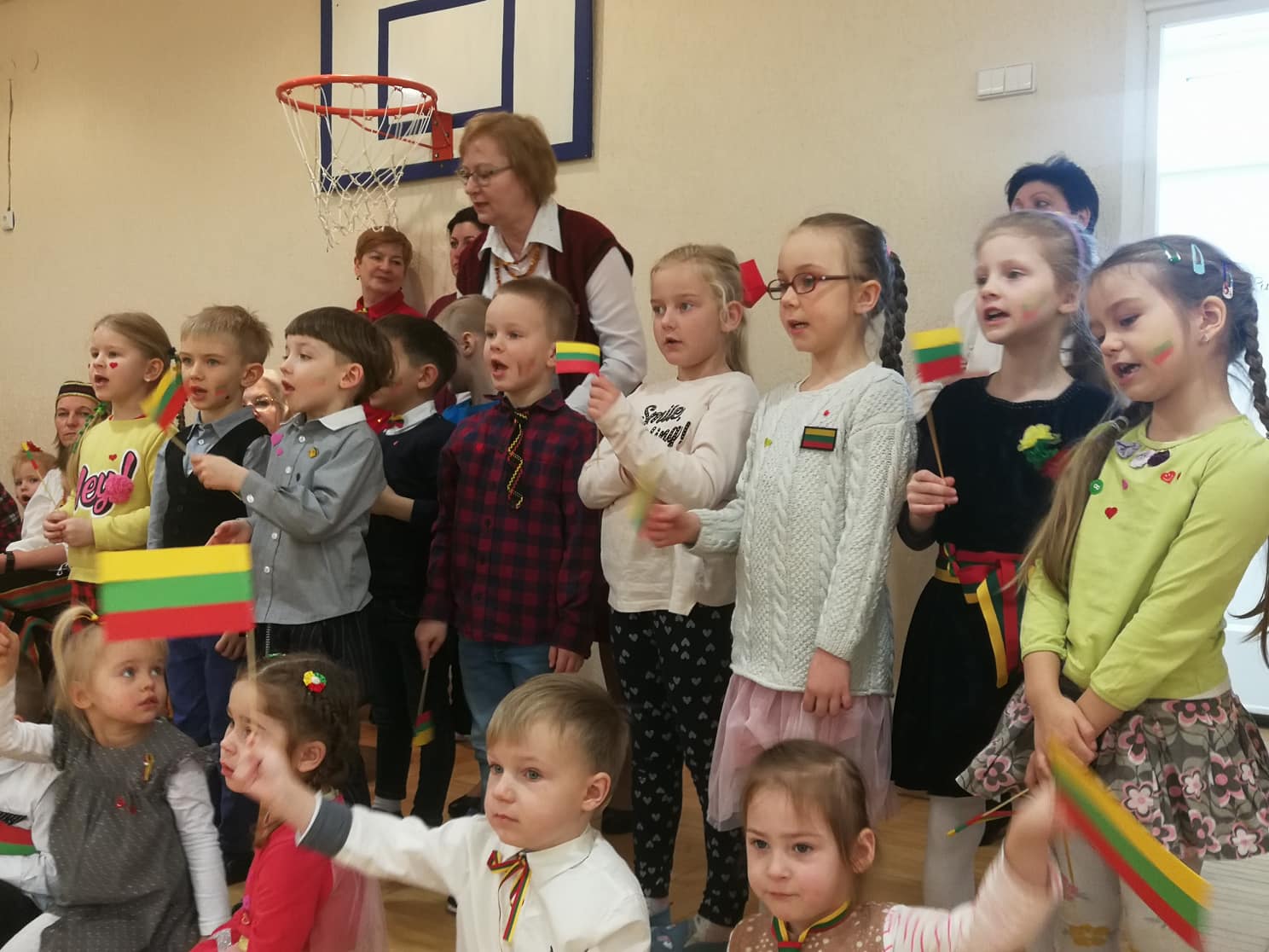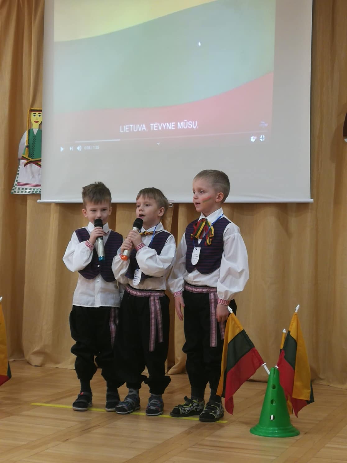 Visą savaitę, ryte iškilmingai giedojome Lietuvos himną skirtingose įstaigos vietose, gaminome įvairiusius darbelius, žaidėme žaidimus ir kitaip ruošėmės Lietuvos gimtadieniui. O penktadienį vyriausieji darželio vaikai pakvietė visus į šventę, kurioje ir šokome, ir dainavome, ir eiles deklamavome.