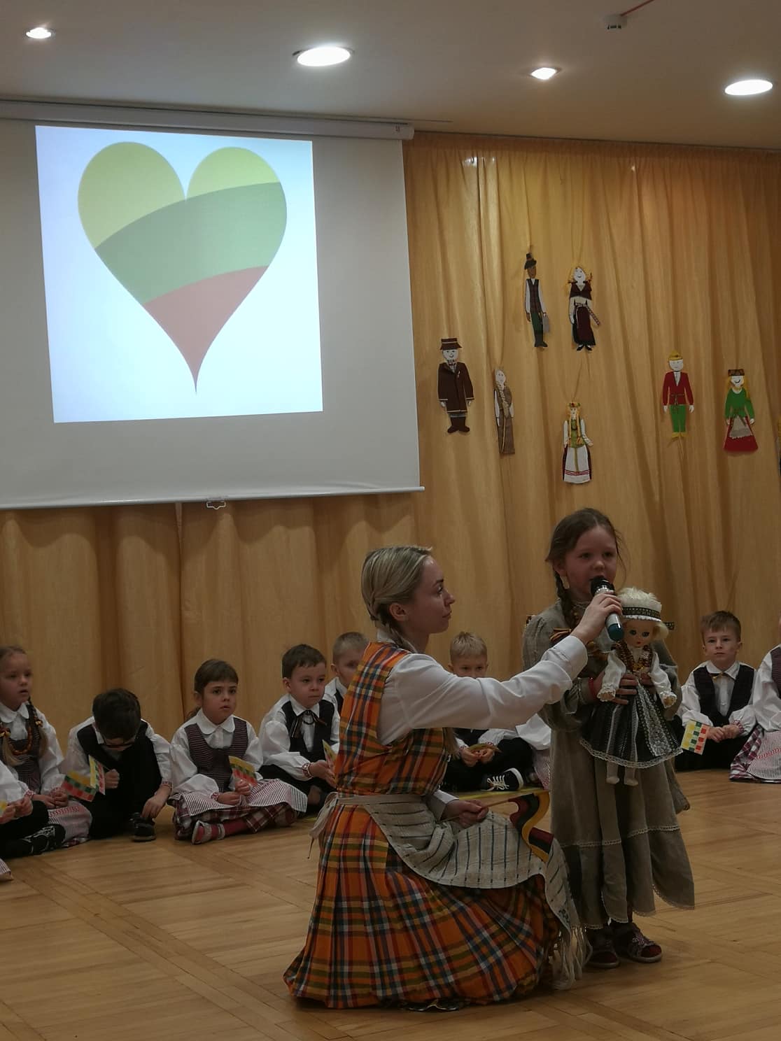 Lopšelio grupių vaikai vykdė tarpgrupinę veiklą "Meilės vėliava". O penktadienį klausėsi vyriausių darželio vaikų deklamuojamų eilių, kartu šoko ir dainavo.