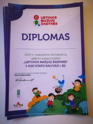 Penktadienio rytmetį Smalsučių, Kodėlčiukų ir Spindulėlių grupės vaikai dalyvavo ,,Mažųjų olimpinių žaidynių I etape". Vaikai sužinojo kokios yra Olimpinių žaidynių sporto šakos, ką reiškia olimpiniai žiedai, atliko smagią mankštą pagal vaikų olimpinę dainą. Žaidynėse buvo paruoštos įvairios estafetės ugdančios fizines ypatybes (lankstumą, vikrumą, ištvermę) draugiškumą ir pastabumą. Pabaigoje vaikams buvo įteikti LMŽ diplomai.