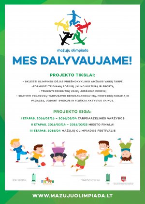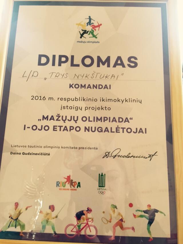Dėkojame gausiai tėvelių palaikymo komandai, kurie ne tik prisidėjo prie organizacinių reikalų, bet ir visomis jėgomis palaikė mažuosius olimpiečius, auklėtojoms Sandrai Kasputytei ir Ramonai Žiauberytei už aktyvų darbą su vaikais.