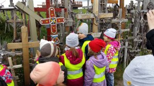 Viena iš daugelio Zipio draugų pamokėlė vyko kryžių kalne. Vaikai žavėjosi kryžių gausa, jų dydžiais, raštais, lipimu į didelį kalną. Pakabinome savo kryželį, aplankėme vienuolyną.