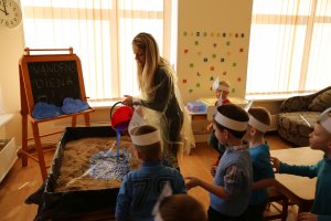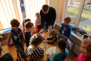 Pasaulinę vandens dieną minėjome grupėse ir bendrame renginyje salėje. "Spindulėliai" grupėje kartu su pagal koperuotų studijų metodą atliekančiais praktiką studentais atliko tyrimus su vandeniu, "Zuikučiai" statė smėlio pilis ir stebėjo išsiveržiantį "ugnikalnį". Salėje vaikai kartu su studentėmis ir pedagogėmis kalbėjosi apie vandens tausojimą, vandens naudą žmogui ir viskam, kas gyva, "braidė po balas", "skraidino debesėlius", "žaidė su lietaus lašeliais".