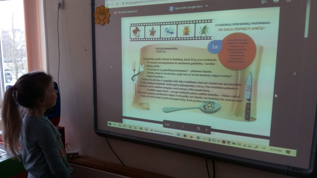 Antrąją dieną vaikai pažiūrėjo filmuką apie tinkamą ir netinkamą elgesį, gavo korteles su pateiktomis situacijomis „Ką darytum, jei..“. Vienas situacijas bandyta suvaidinta, kitas – aptarti žodžiu Tinkamus sprendimus užrašė. Veiklų metu bandyta atrastus sprendimo būdus pritaikyti grupės veiklose.