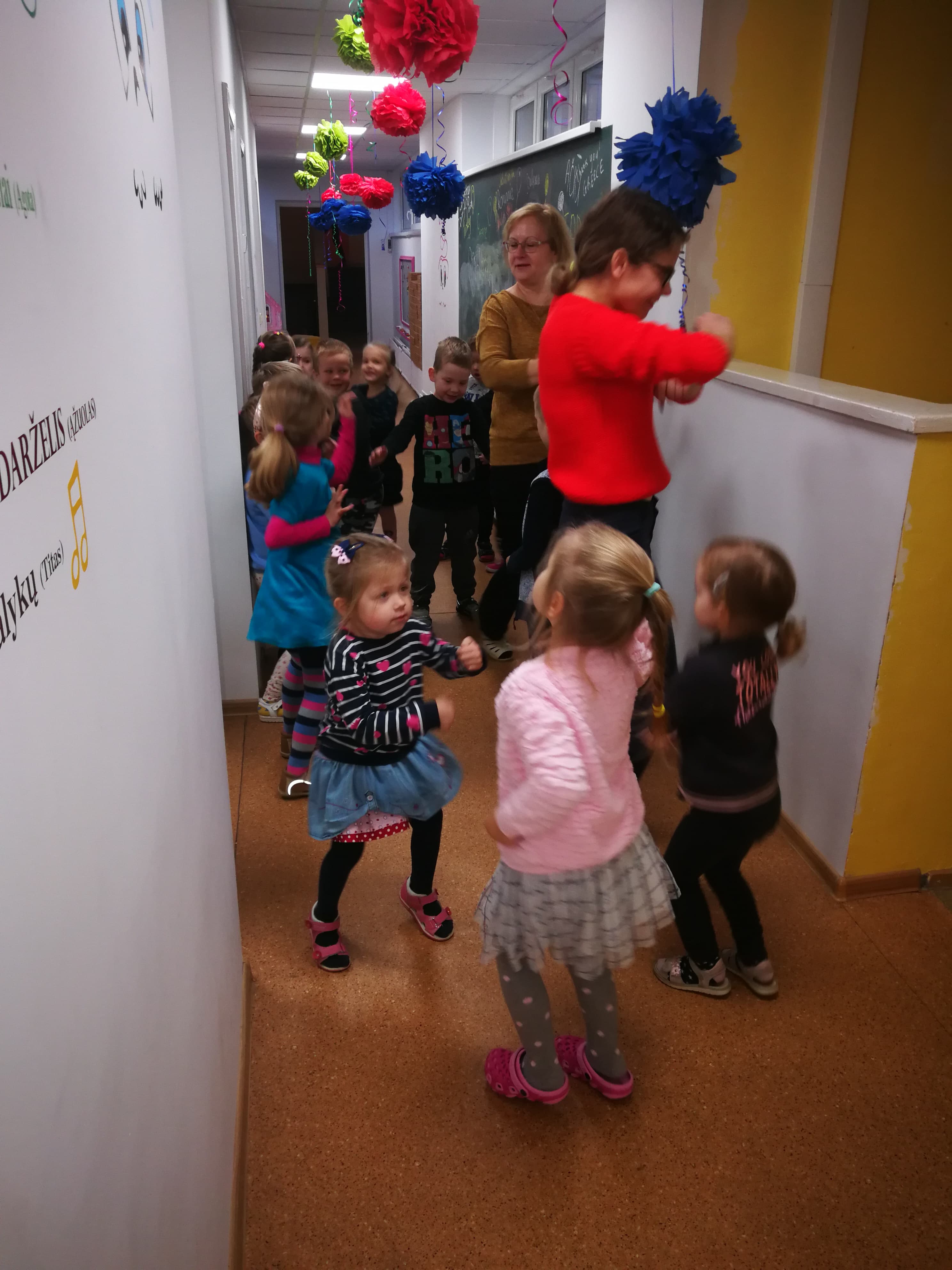 Rytas prasidėjo smagiausiomis mankštomis. O vėliau rinkomės į atrakcijas ,,Sportuojančiuose" koridoriuose, kur savo jėgas išbandė ir mažiausieji ir didžiausieji darželio ugdytiniai.