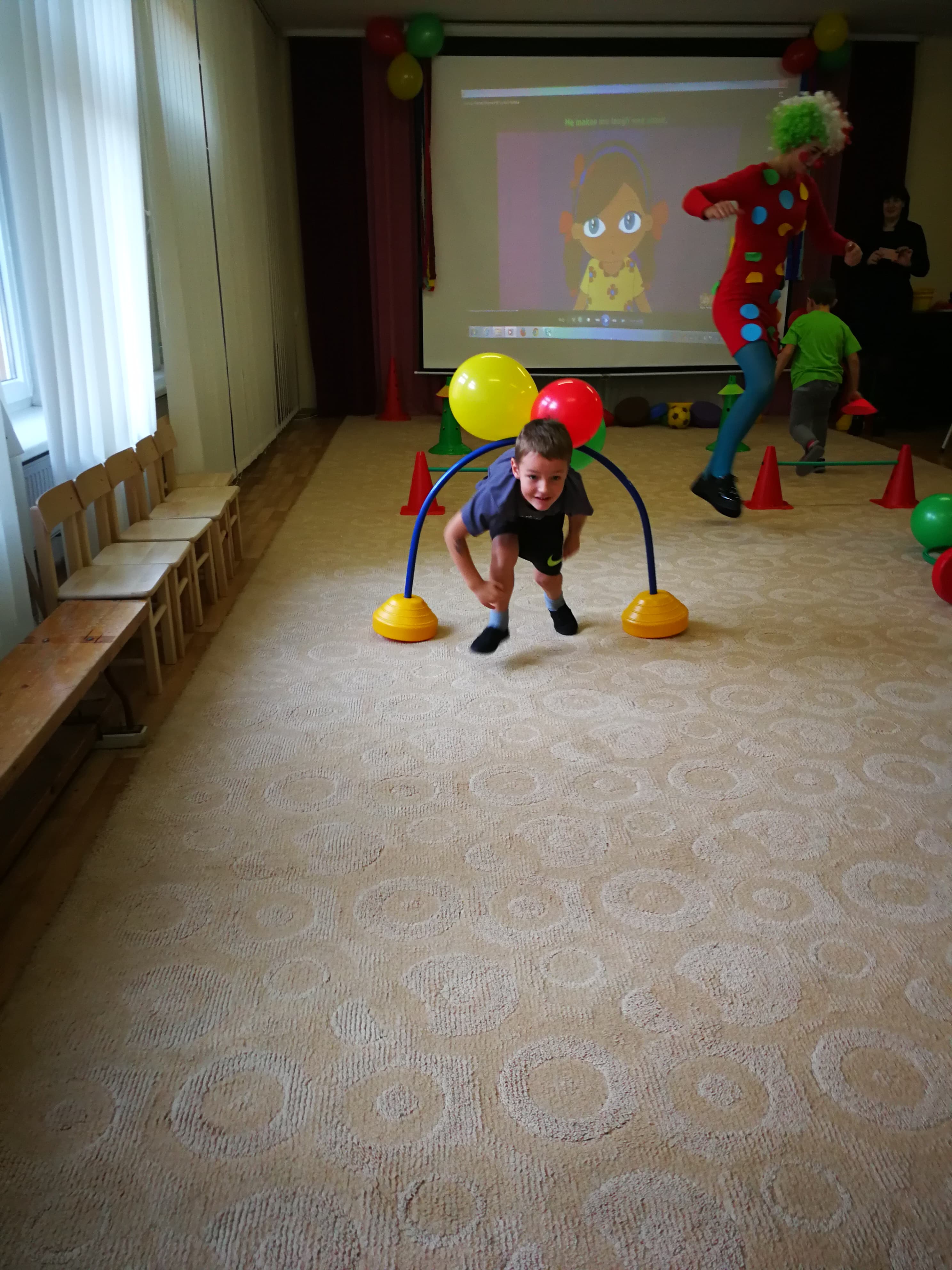 Kartu su klounais, drambliais, meškinais bei pakaliku sportavome smagiose estafetėse ir žinoma laimėjo DRAUGYSTĖ.