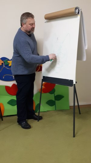 Pedagogų ir tėvų pageidavimu į įstaigą atvyko vaikiškų knygelių rašytojas ir iliustratorius iš Šiaulių Dainius Šukys, kuris vaikams vedė edukacinį užsiėmimą. Vaikai klausėsi pasakų, mokėsi iliustruoti knygą, gavo autoriaus autografą, gardžiai juokėsi ir linksmai kvatojo iš įspūdingų pasakojimų.