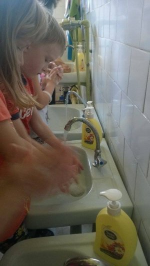 Priešmokyklinėse grupėse lankėsi sveikatos specialistė Sandra, kuri priminė vaikams, kaip taisyklingai plautis rankas.