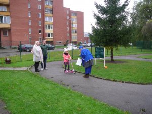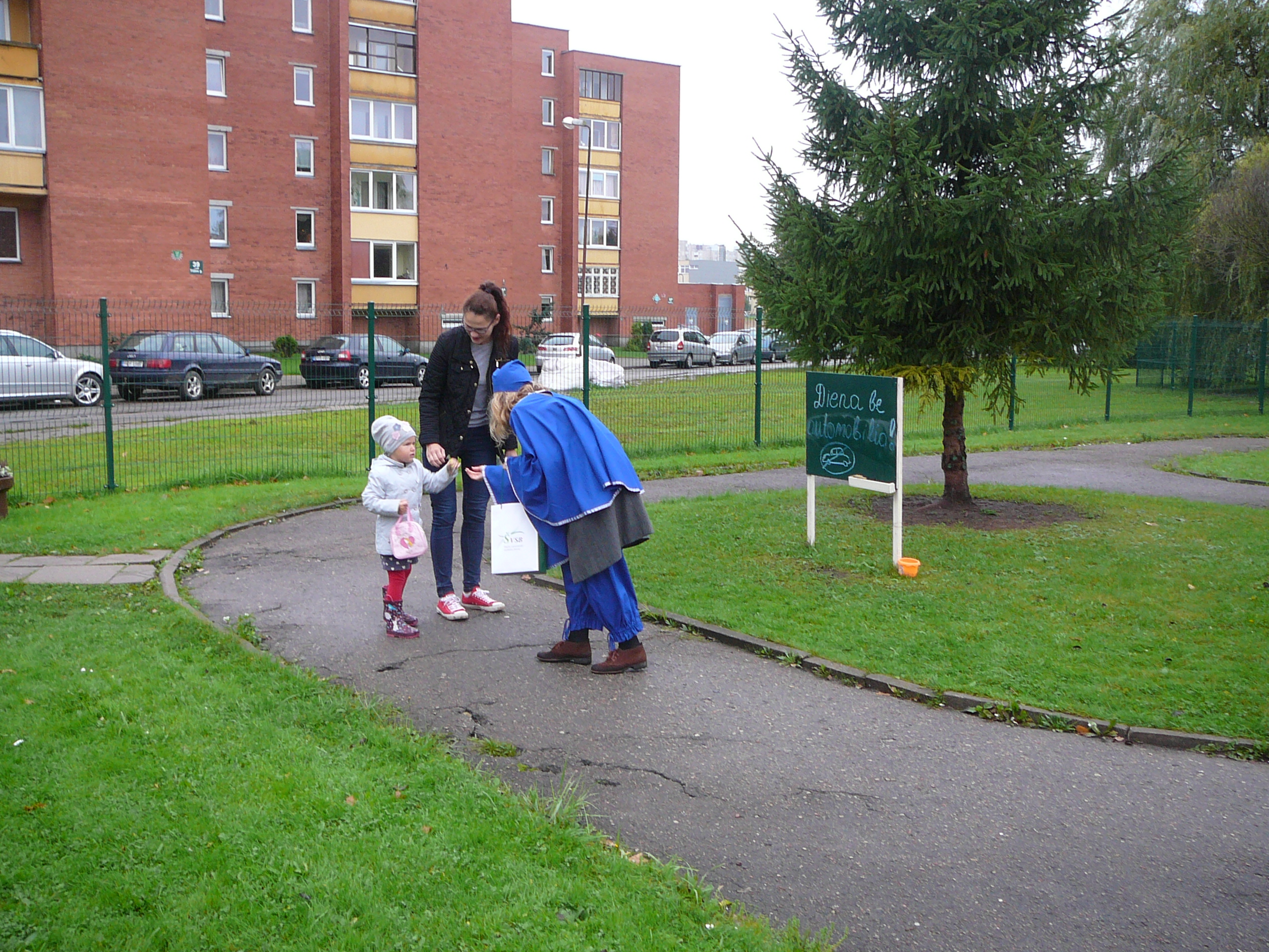 Tarptautinę dieną be automobilio darželio bendruomenė pradėjo minėti nuo ankstaus ryto. Visus ateinančius ar atvažiuojančius dviračiais ir paspirtukais pasitiko ir sveikino nykštukai, kurie ne tik linkėjo geros dienos, bet ir įteikė atminimo dovanėlių. Vėliau visi rinkomės lauke, kad galėtume apžiūrėti draugų transporto priemones ir palenktyniauti, o "Smalsučių" ir "Kodėlčiukų" grupių vaikai su auklėtojomis aplankė šalia darželio esančias parduotuves, kirpyklą, siuvyklą ir su visais sutiktais kalbėjosi apie šios dienos svarbą bei dalijo pačių pasigamintas skrajutes.