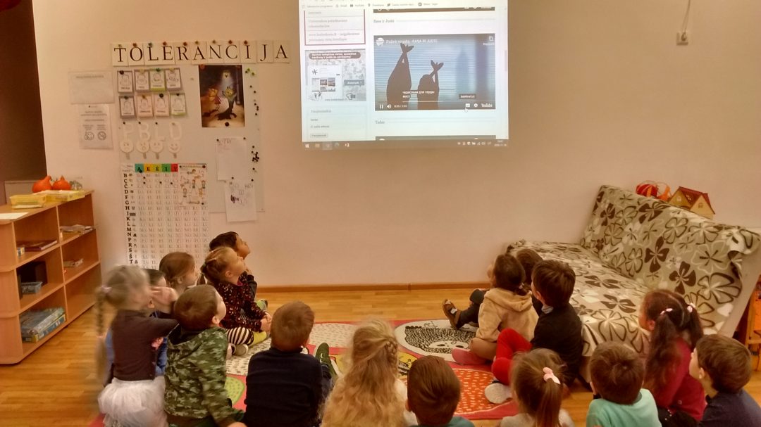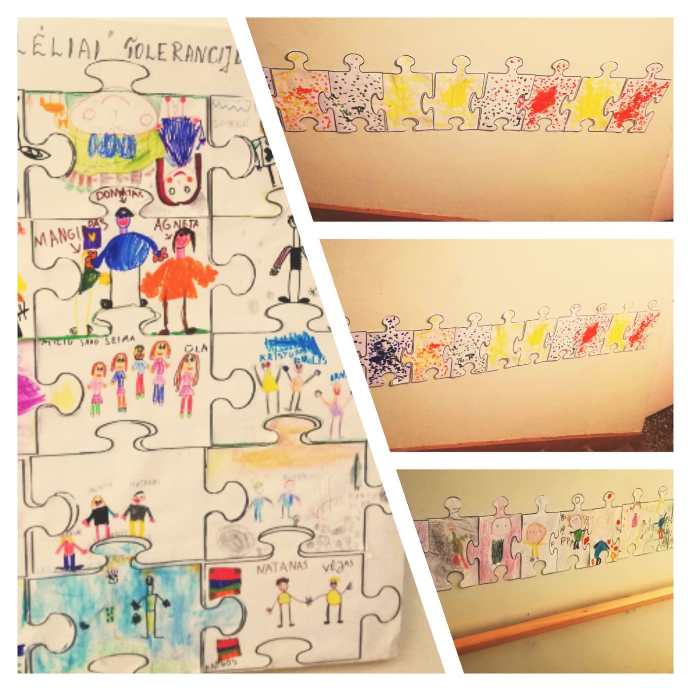 Minint šią dieną lopšelyje-darželyje, vaikai žiūrėjo video medžiagą apie įvairius žmones, gyvenančius šalia mūsų, piešė dėliones su savo atvaizdu, pomėgiais , jas jungdami į bendrą kūrinį - tolerancijos juostas.