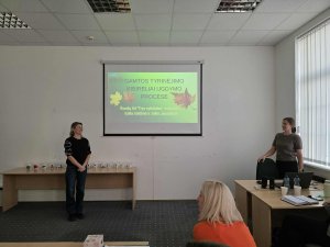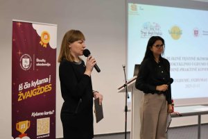 mokytojos Edita Gelžinė ir Jolita Jasulaitytė pristatė pranešimą "Gamtos tyrinėjimo kibirėliai ugdymo procese";