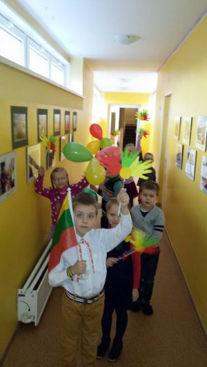 Įstaigoje šiandien minime Vasario 16-ąją, Lietuvos valstybės atkūrimo dieną. Darželio koridoriai skamba nuo Lietuvos himno giedojimo, patriotiškų dainų iki linksmų užsiėmimų sporto salėje, grupėje ar kieme