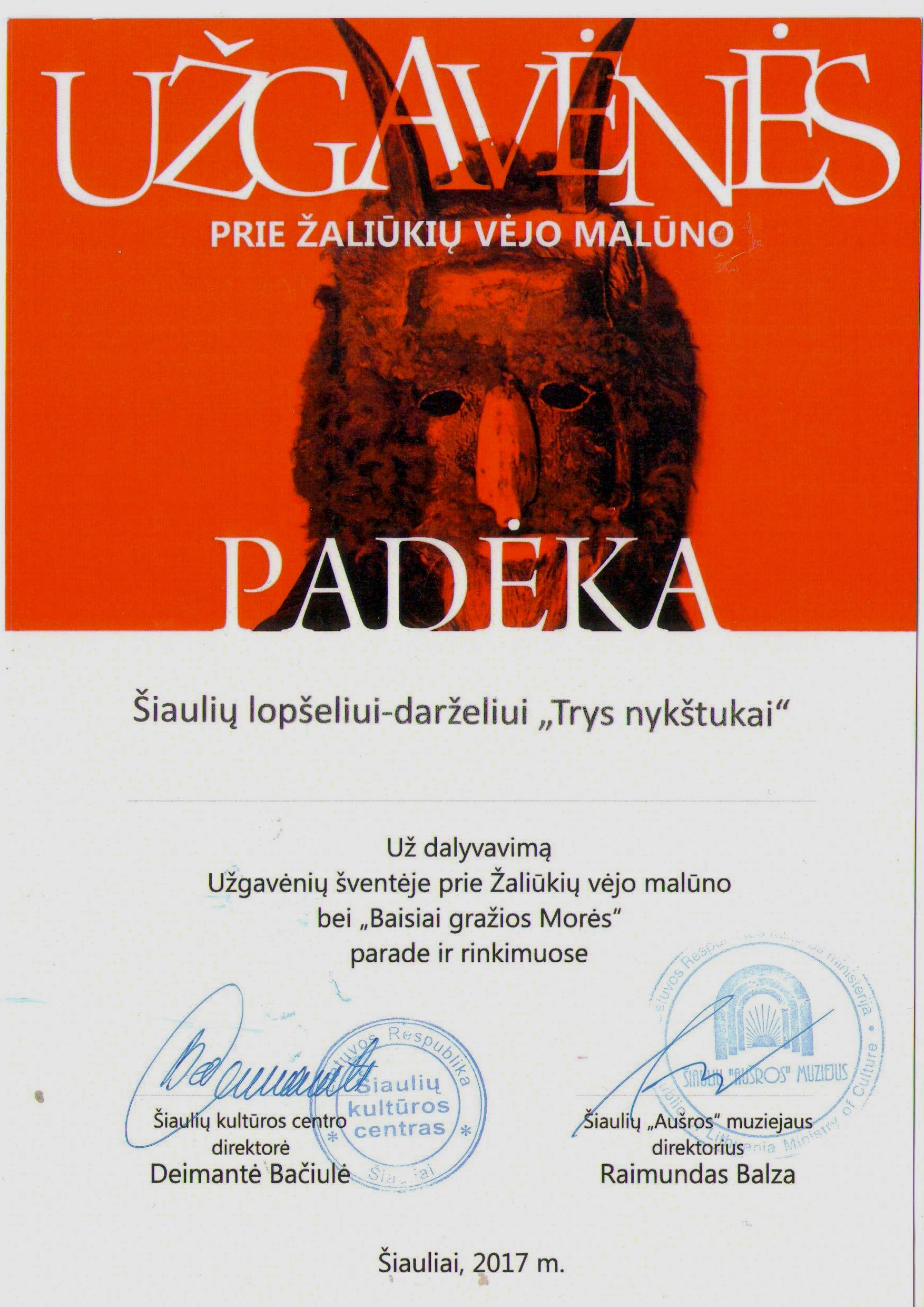 Vasario 25 d. darželio atstovai dalyvavo Žaliūkių malūnininko sodyboje vykusioje Užgavėnių šventėje bei „Baisiai gražios Morės“ parade ir rinkimuose. Morę paradui paruošė auklėtojos Rasa Abelkienė ir Elvyra Mickuvienė.